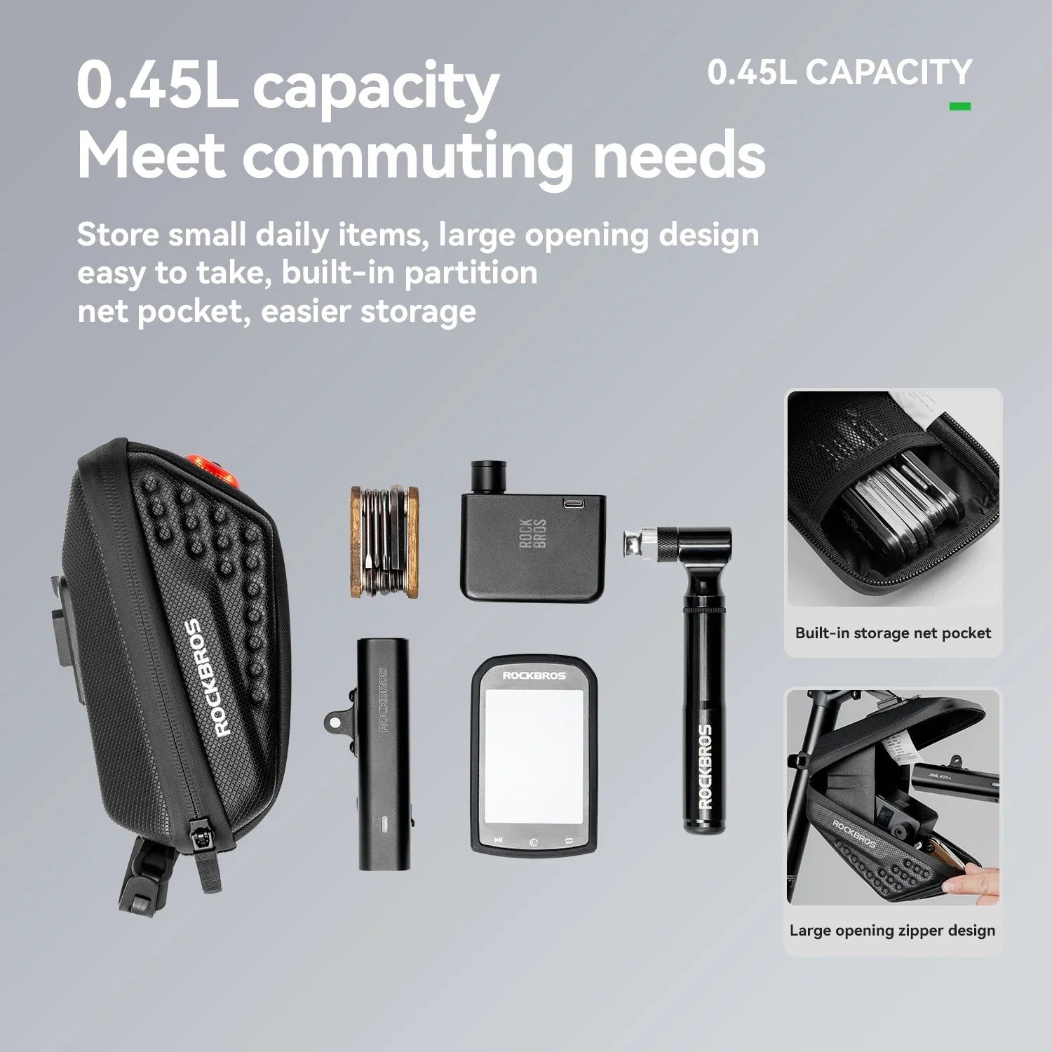 Bolsa de Selim ROCKBROS Hard Shell – Impermeável, 5 Estilos, Resistente a Arranhões com Lanterna Traseira Integrada