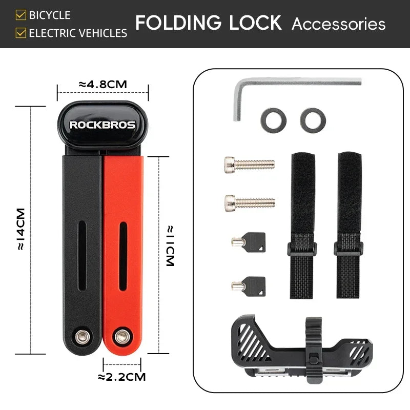 Cadeado Dobrável ROCKBROS – Trava Antifurto com Corrente 120cm para MTB, Estrada e Uso Urbano