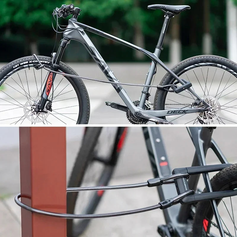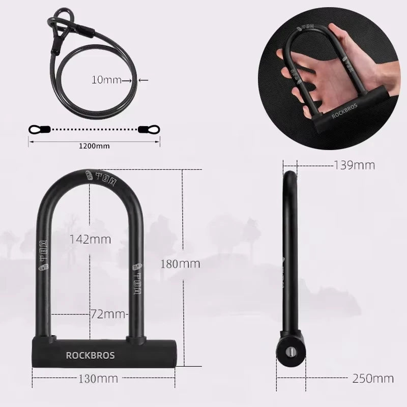 Cadeado ROCKBROS Estilo Chinês – Trava em U com Cabo de Aço Antifurto para Bike e Patinete Elétrico