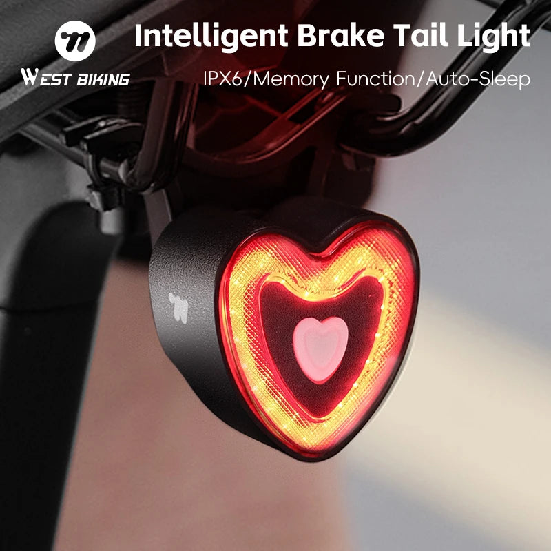Luz Traseira WEST BIKING – Sensor de Freio Automático em Formato de Coração, USB Recarregável para Bike