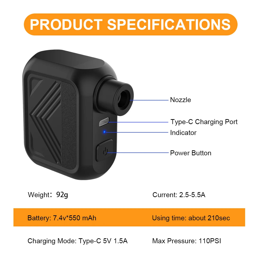 A Mini Bomba de Ar U1Pro combina potência e portabilidade em um design compacto ideal para ciclistas exigentes. Com pressão máxima de 100PSI, ela infla pneus de bikes, scooters e bolas rapidamente. Compatível com válvulas Presta e Schrader, possui bateria recarregável via Type-C (5V), garantindo autonomia e eficiência em qualquer pedal.